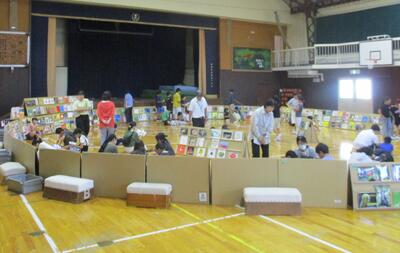 9/1、9/2 体育館で「ひろば読み」を行いました。ボランティアの皆さまにご協力いただき、本に親しむ時間を過ごすことができました。
