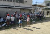 9/22(月)児童朝会の後、1・2年生の児童たちがシャボン玉を作りました。とてもたくさんのシャボン玉ができて、児童たちは喜んでいました。