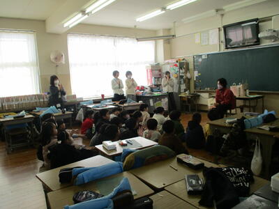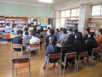3月13日(木)の1時間目と3時間目に、本校図書ボランティア「テディベア・ブッククラブ」のみなさんが卒業前の6年生に「卒業お話し会」を図書室で実施していただきました。