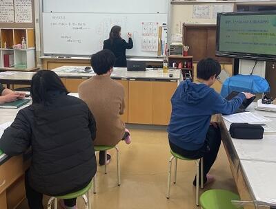 2月12日(水)の放課後、大阪体育大学の蛯谷みさ教授にお越しいただき、国語科の指導方法についての校内研修を実施しました。