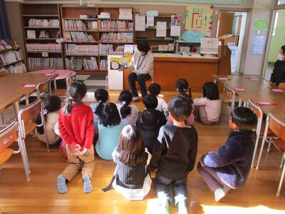 2月13日(木)の放課後、1年生と3・4年生の希望者を対象に、本校の図書ボランティアのテディベア・ブッククラブの方による放課後読書クラブを実施しました。