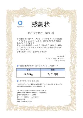 児童・保護者のみなさまにご協力いただいております、コンタクトレンズの空きケースを回収して、アイバンクの活動の支援にあてる「アイシティ ecoプロジェクト」の事務局より感謝状が届きましたので、紹介します。