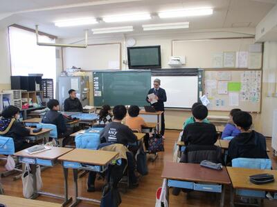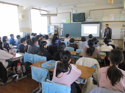 3月10日(月)の2時限目に高石中学校の斎藤先生、高南中学校の峯上先生が6年生に、中学校入学に際してのガイダンスを実施してくださいました。