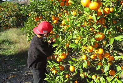 昼食後に有田中央高校の実習園に移動し、高校の先生から、美味しいミカンの見分け方を教わった後、ミカンの試食とみかん狩りを楽しみました。