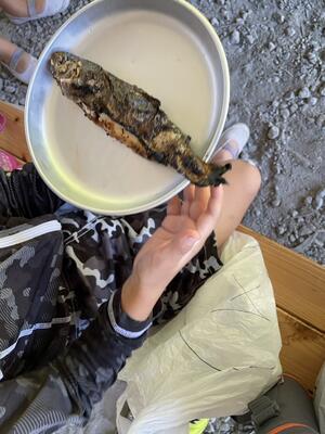魚つかみを終え、昼食のカレーライスを作り始めました。