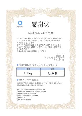 ご家庭でコンタクトレンズを使われた際の空きケースは、職員室前の回収ボックスに入れていただきますと、ある程度集まりましたら、業者に送付しています。