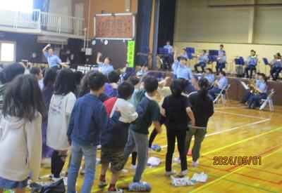 児童が良く知っているアニメのテーマソングも演奏してくださったり、ジャンボリーミッキーの演奏に合わせて、みんなで楽しく踊りました。