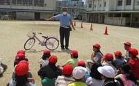 5月20日(月)3時間目に高石警察の警察官と高石市土木管理課の方に来ていただき、3年生に交通安全教室を実施しました。