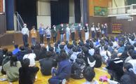 12月3日に、体育館で「劇団風の子」による演劇鑑賞を実施いたしました。この演劇鑑賞は、高石市役所産業共創課の紹介により、ENEOSの学校支援補助事業により行うことができました。関係の皆様、ありがとうございました。